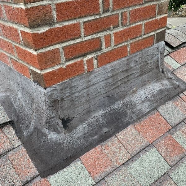 Cracked and aging flashing around the chimney created a major vulnerability for water intrusion.