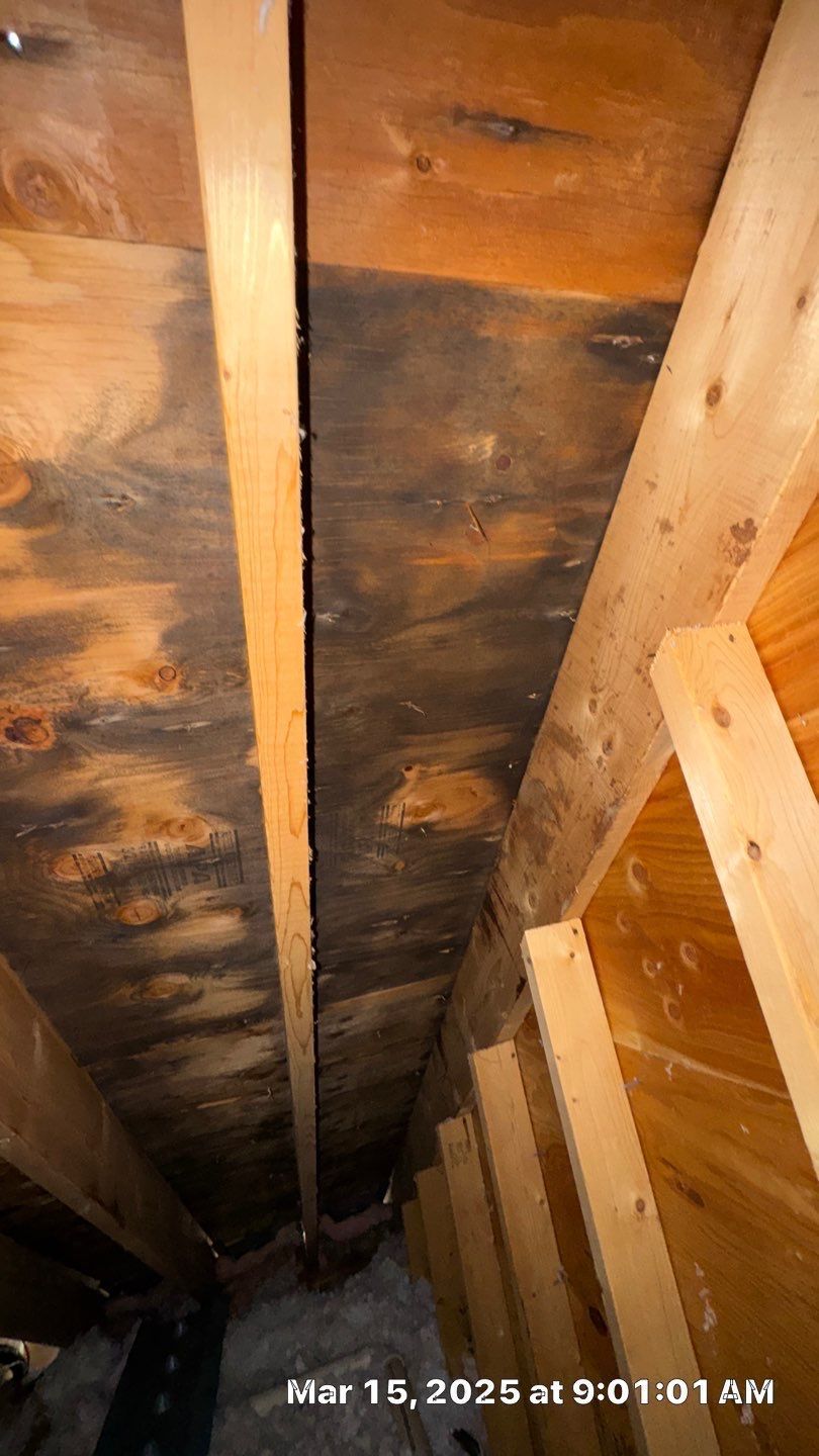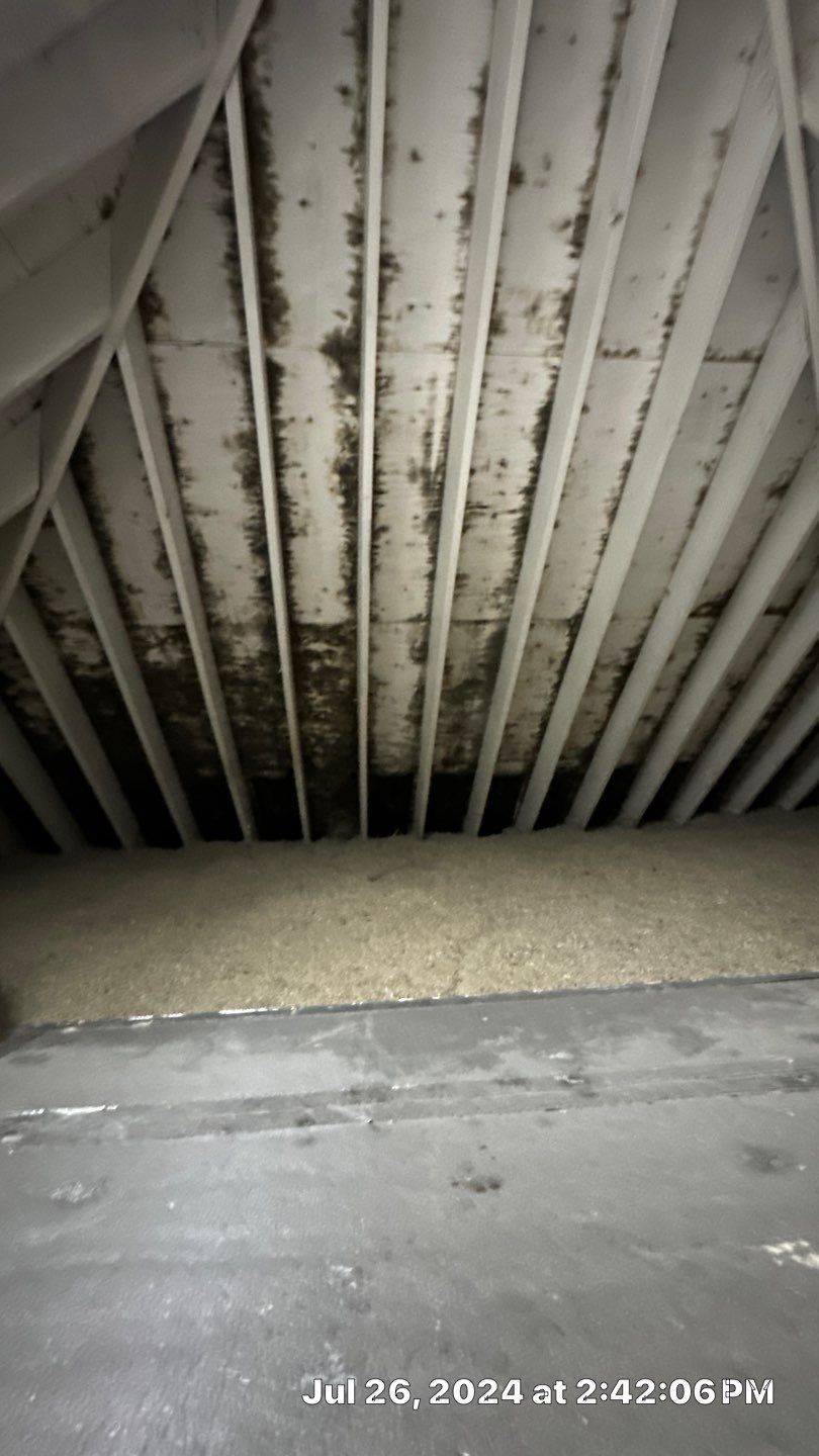 - Visible mold (black, green, or other colors) in the attic or on ceilings.