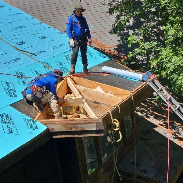 - Damaged rafters, sheathing, soffits, and fascia boards were replaced with strong, durable materials.