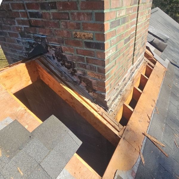 - Removal of damaged roofing materials around the chimney